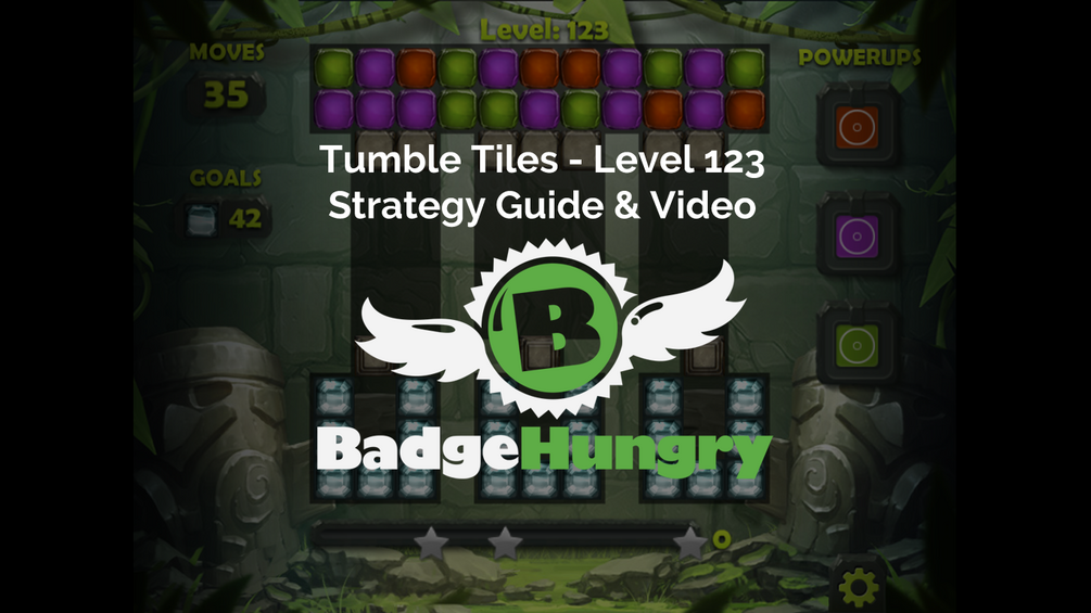 Learn how to get 3 stars on Tumble Tiles Level 123 using BadgeHungry's strategy guide and video.
